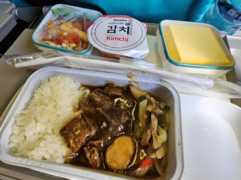 비행기 탑승해서 점심 식사로 기내식을 먹었어요