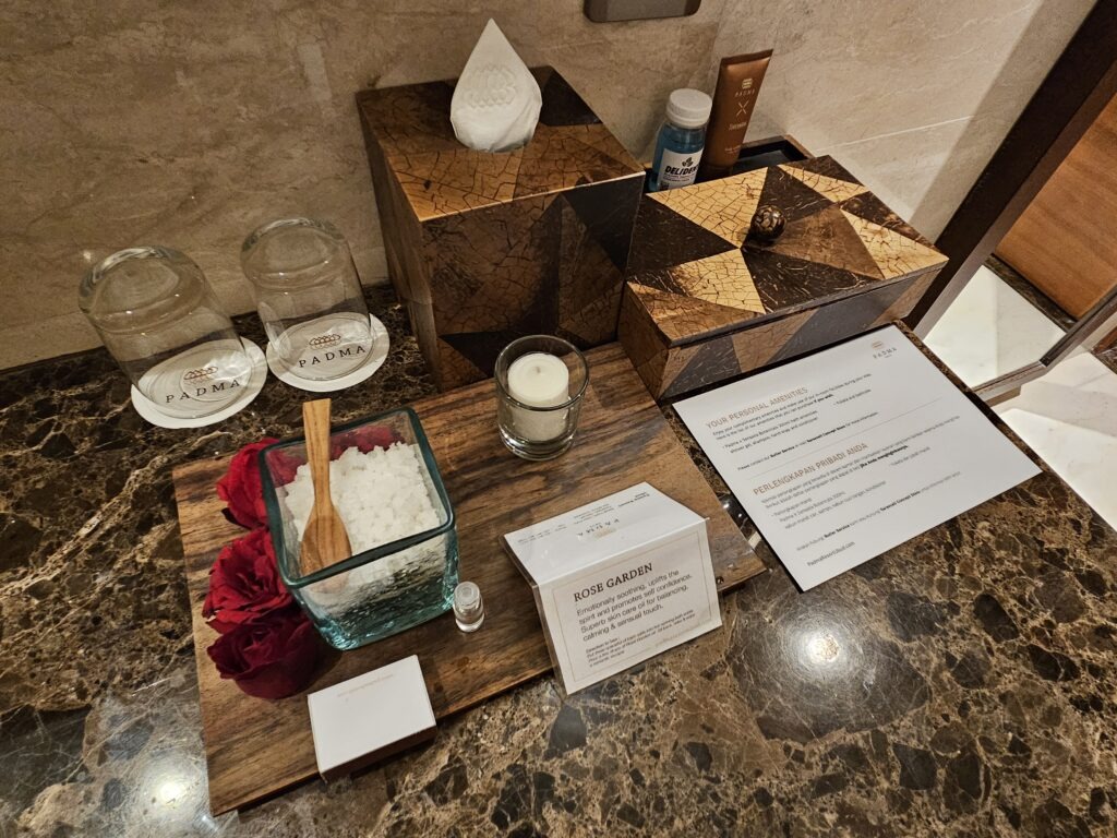 장미 꽃잎과 배쓰 소금, 양초 등도 구비되어 있어요 🙂